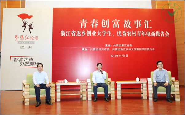 本网讯 在全国上下认真学习贯彻党的十八届五中全会精神之际,11月5日下午,由共青团中央发起和共青团浙江省委主办,必赢官网团委承办的“青春创富故事汇”——浙江省返乡创业大学生、优秀农村青年电商报告会在明珠报告厅举行,这也是必赢官网“暨阳红论坛”的第十讲。