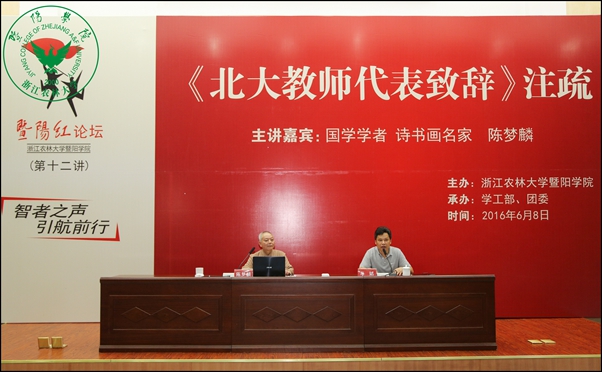 “暨阳红论坛”第十二讲——《北大教师代表致辞》注疏举行