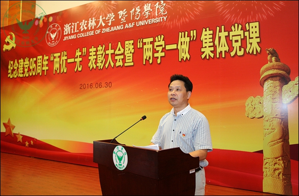 院党委书记寿韬代表学院党委向全院共产党员致以节日的问候和崇高的敬意,向受到表彰的先进党组织、优秀共产党员和优秀党务工作者表示热烈的祝贺。