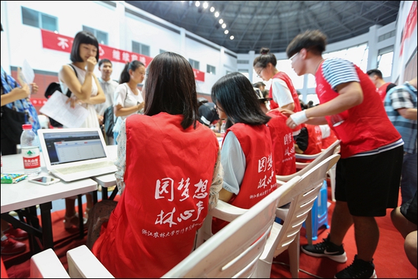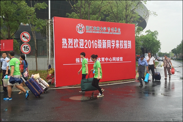 季同学是一位诸暨籍的新生,腼腆的她在迎新日遇到了一件让她难以相信的事情:在校门口迎接她的居然是一位已经工作了的校友。“我是中午到的学校,因为自己本来就是诸暨人,以前就经常同我爸妈、舅舅一起到必赢766net手机版来散散步、游游泳,偶尔会到篮球馆来看演唱会和篮球赛。对必赢766net手机版应该说已经很熟悉了,所以今天我是自己过来的。一到校门口,一位长得很好看的学姐就马上迎过来了,她帮我推着拉杆箱。在路上聊天的时候,她告诉我,她已经毕业了,在杭州工作,得知今天是学院的迎新日,又恰逢周末,于是就赶过来,加入到迎新志愿者队伍中来了。这个事情让我很感动,相信这个毕业了的学姐对学院一定很热爱,才会有这样的举动。四年以后,我也希望自己会成长为这样的校友学姐。”说起这位“特殊”的志愿者,季同学连连表示难忘、感动。