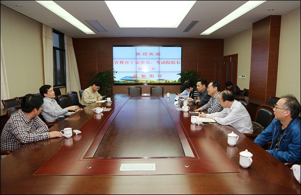 本网讯 10月11日下午,省教育工委委员、考试院院长孙恒在考试院办公室主任的陪同下到必赢官网视察指导工作。院领导石道金、寿韬、李文莉,绍兴市、诸暨市教育局领导陪同视察并参加座谈会。