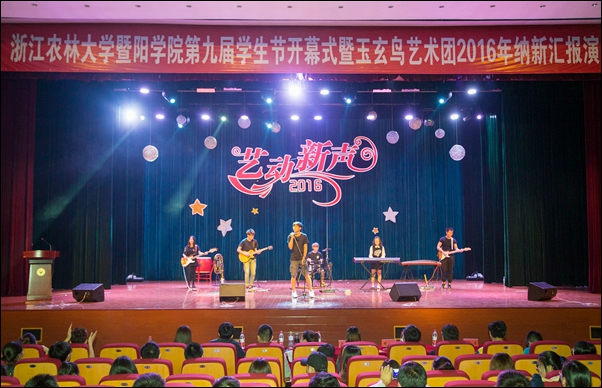 玉玄鸟艺术团2016年纳新汇报演出拉开本届学生节帷幕。器乐队K846乐队的开场演出充满热情,使现场的气氛迅速升温。舞蹈队用灵动的舞姿、现代的灵感充分演绎了《Greedy girls》、《Pick me》、《歌舞青春》等作品,把温馨回忆与祈愿未来的美好心愿融化在音符与舞步中;三面墙剧社带来小品《快与慢》、《如此队友》、《谁是谁的谁》、《天地会》幽默风趣、引人深思;礼仪模特队带来《厉害了我的秀》,声乐队表演“好歌连唱”,主持队演绎《一朵花开的城》、《听奶奶讲过去的故事》等。纳新汇报演出节目以艺术团历年和文化直通车“文艺巡演”经典曲目为题,用随机抽签表演的方式进行考核,艺术团负责人担任纳新面试最后一关主考官,器乐队、声乐队、舞蹈队、主持朗诵队、礼仪模特队、三面墙剧社各队队长担任导师进行点评,193名艺术团新生力量利用6天的课余时间排练,在终极考核阶段各显身手。现场节目形式多样而富有朝气,玉玄鸟艺术团的新生力量用澎湃的热情、灵动的才艺赢得了现场观众的一致肯定,增添了青春风采。