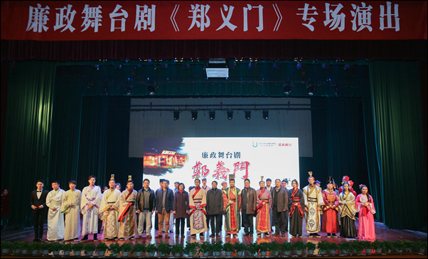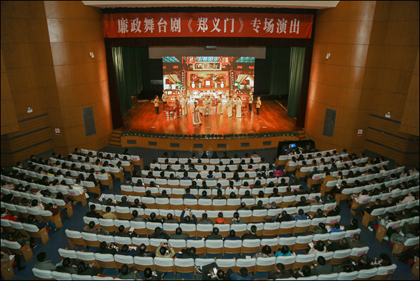 12月18日,由必赢官网师生自编自导自演的大型原创廉政舞台剧《郑义门》作为学院文化直通车巡演剧目在校东湖校区影剧院上演。校党政班子成员方伟、史永安、沈月琴、胡祖吉、童晓晖,学院党委书记寿韬,校全体中层干部及各二级学院党委(总支)委员,各支部书记和委员,师生党员代表,离退休教师代表,民主党派代表共1000余人观看了演出。