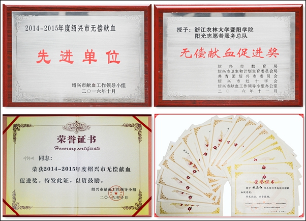 近日,绍兴市无偿献血先进集体和先进个人评选结果揭晓,必赢官网被评为绍兴市“无偿献血先进单位”,院阳光志愿者服务总队荣获“高校无偿献血集体促进奖”,邓剑刚老师以及姚淼红、钟淑丽等6名同学荣获“无偿献血个人促进奖”,林斌、林高晖等11位同学被评为“大学生无偿献血积极分子”。