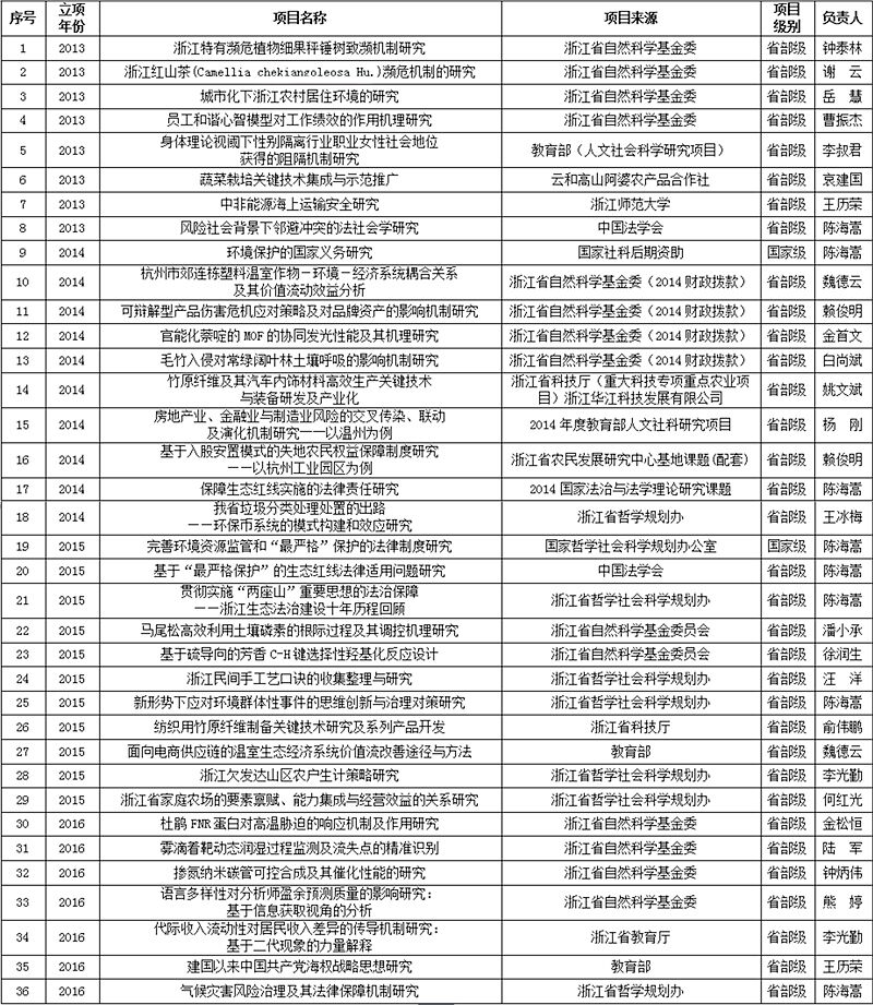 2013年以来,学院紧密结合地方经济社会发展需求,着眼于加强内涵建设和质量提升,加强科研工作顶层设计,大力推进学科专业一体化建设,学院科研方面取得了丰硕成果。学院教师承担各级各类科研项目237项,其中纵向项目156项,横向项目81项。其中承担国家级项目2项,省部级项目34项,厅局级项目88项。累计到位经费总量超过1200万元。教师共获得各类科研成果奖励27项,其中突破性的获得浙江省哲学社会科学优秀成果奖二等奖1项。出版专(编)著24部,科研成果获得省部级领导批示7件。获得授权专利100项,其中发明专利71项。发表各级各类科研论文641篇,其中SCI、EI等检索论文82篇,2014年学院教师在权威期刊上发表论文1篇,这是必赢官网科学研究在国内顶尖学术期刊上的重大突破;2016年在英国皇家化学会期刊、化学学科Top期刊、中科院1区期刊《ChemicalCommunications》发表论文一篇。