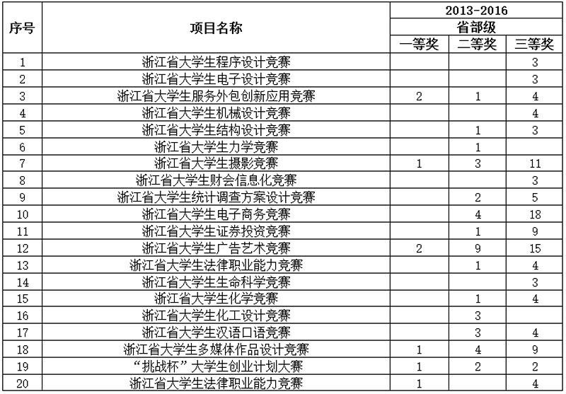 2013-2016年部分一类竞赛省部级获奖情况一览表