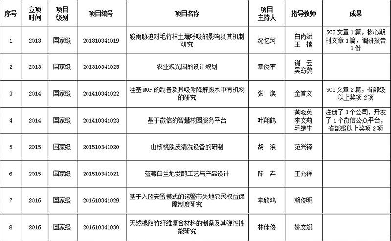 2013-2016国家级科技创新项目一览表