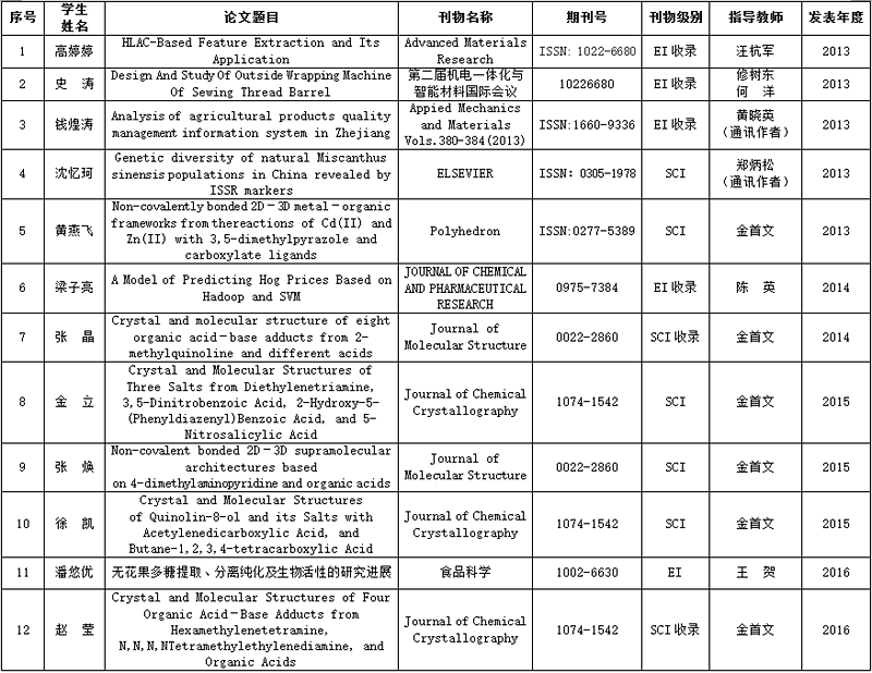 2013-2016年学生发表SCI、EI收录论文一览表