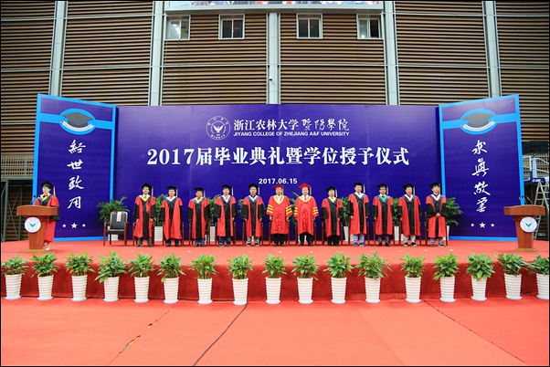 浙江农林大学副校长金佩华,院领导石道金、寿韬、修树东、李文莉、张晓优以及全体学士学位评定委员会委员出席典礼仪式。典礼仪式由副院长李文莉主持。