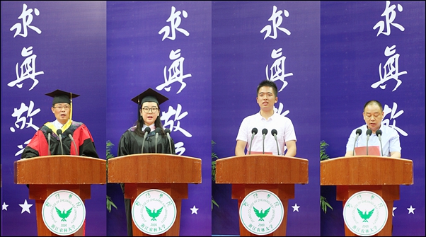 毕业典礼上,教师代表周伯煌,毕业生代表施佳慧,在校生代表王伟鹏,毕业生家长代表王文平先后发言。