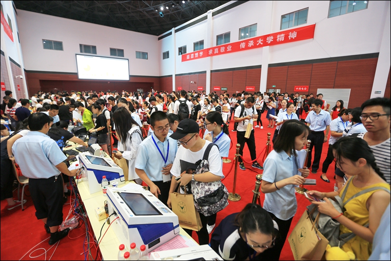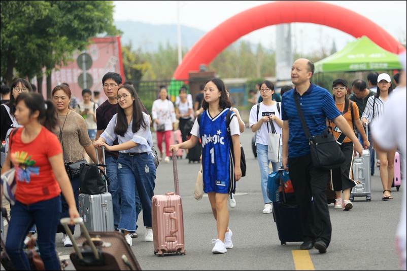 本网讯 9月9日,金秋时节的美丽暨阳迎来了又一批莘莘学子。2017级1600多名新生怀着喜悦的心情从五湖四海会聚到必赢766net手机版,从这里扬帆起航,开启人生新的征程。早上6点开始,迎新的工作人员和志愿者就陆续到位,在体育中心网球馆、在火车站、在汽车站、在学校门口、在学生公寓……迎接新同学的到来。