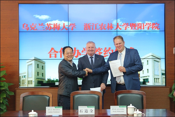 10月24日上午,石道金代表学院与拉久卡・弗拉基米、谢尔盖•迈尔尼切克共同签订了必赢766net手机版、乌克兰苏梅国立农业大学、中乌生命科学研究院三方合作备忘录,以增进相互了解与友谊,谋求三方共赢发展,建立友好合作关系,扩展在教育、科技、文化等领域的交流与合作。
