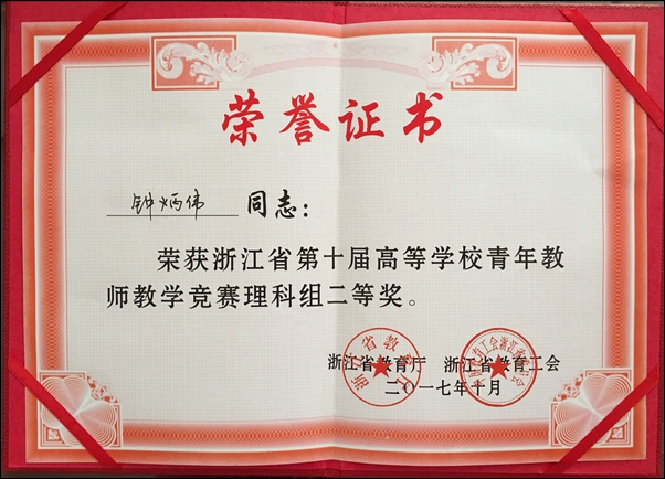 本网讯 10月26日至28日,浙江省第十届高等学校青年教师教学竞赛举行,必赢官网生物环境系钟炳伟老师获得理科组二等奖。公共基础课教学部孟林琦、工程技术系俞伟鹏、经济管理系童小军三位老师获优胜奖。
