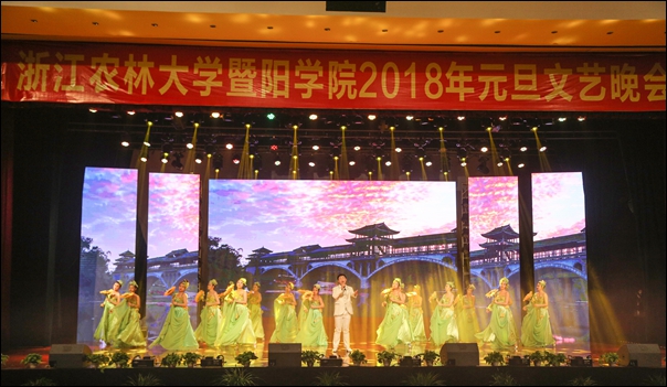 副院长张晓优、金松恒,党委副书记高国俊出席晚会,学院全体中层干部、诸暨相关单位负责人和千余名师生代表欢聚一堂、辞旧迎新、共贺新年。晚会以“暨阳,告诉你”为主题,表达暨阳师生立足诸暨、锐意进取、服务发展的豪情壮志、无限憧憬。