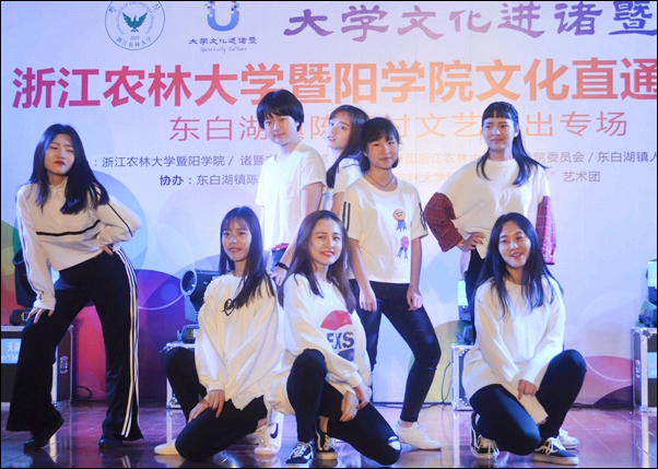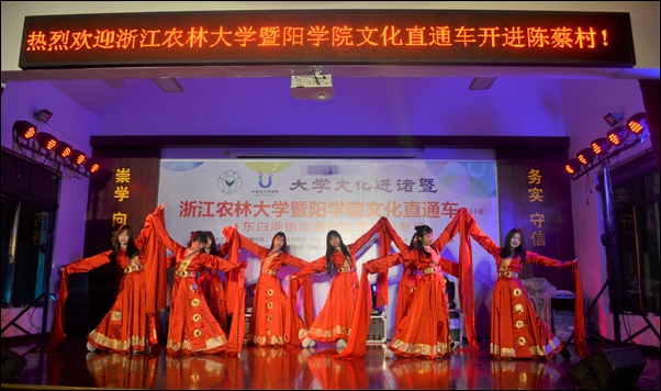 学院大学生“玉玄鸟”艺术团在学院迁址诸暨办学的形势下,抢抓机遇,主动作为,创新发展,争做大学文化传承与发扬、引领与创新的排头兵,争当服务公共文化建设、丰富群众文化生活的标兵。学院积极打造文化直通车,服务地方文化礼堂建设,把大学文化送到基层一线,累计下乡已达67场,为大学文化走进诸暨乡村做出了示范与引领。
