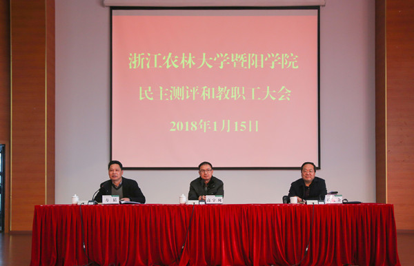 1月15日下午,学院在明珠报告厅召开民主测评暨教职工大会。校党委组织部、统战部副部长高宇列,学院党政班子出席会议。大会由院党委书记寿韬主持。