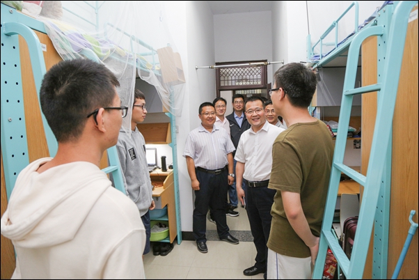 在学生寝室,潘国忠书记和同学们亲切交谈、嘘寒问暖,详细询问他们的学习、生活、就业情况:“最近感觉学习压力大不大?”“在必赢766net手机版生活感觉如何?”“现在工作找得怎么样了?”“对公寓后勤管理有什么建议?”……听了同学们的回答和建议,潘书记鼓励同学们珍惜大学时光,做好学业规划,积极参加活动,提高综合能力;在公寓学生自习室,他对在自习看书的同学表示赞扬并给予鼓舞,希望同学们坚定信念,坚持理想,为目标不懈奋斗。潘书记热情关怀的问候,让同学们感受到了来自学院的关心和家庭般的温暖。