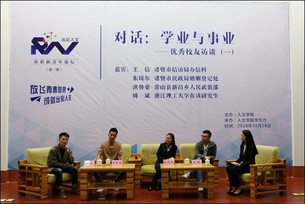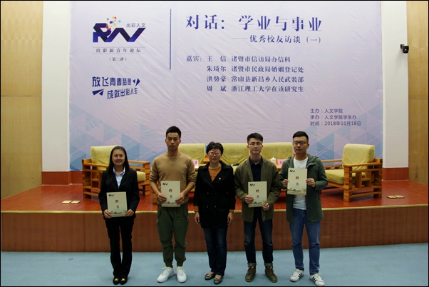 放飞青春梦想,成就出彩人生。值此浙江农林大学60周年校庆来临之际,10月18日晚,人文学院在图书馆报告厅举行第六届出彩文化节之出彩新青年论坛第二讲,邀请了优秀校友代表作客论坛,共话学业成长与事业发展。