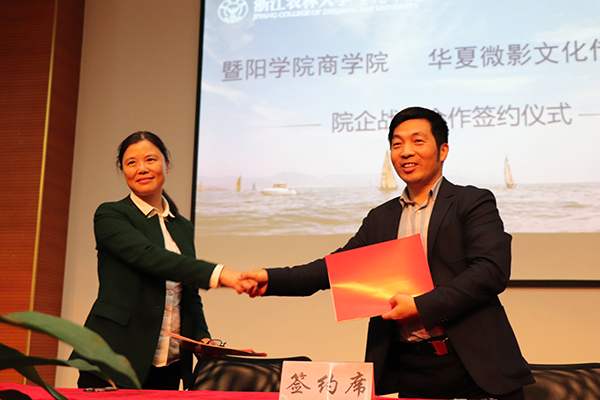 随后举行了商学院与华夏微影文化传媒中心的战略合作签约仪式,双方代表上台签署战略合作协议书,并授牌必赢官网为全国高校微电影微视频双创孵化平台。