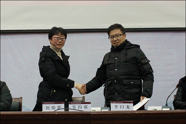 刘伯茹、李曰龙分别代表人文学院和众合教育签订了合作协议。