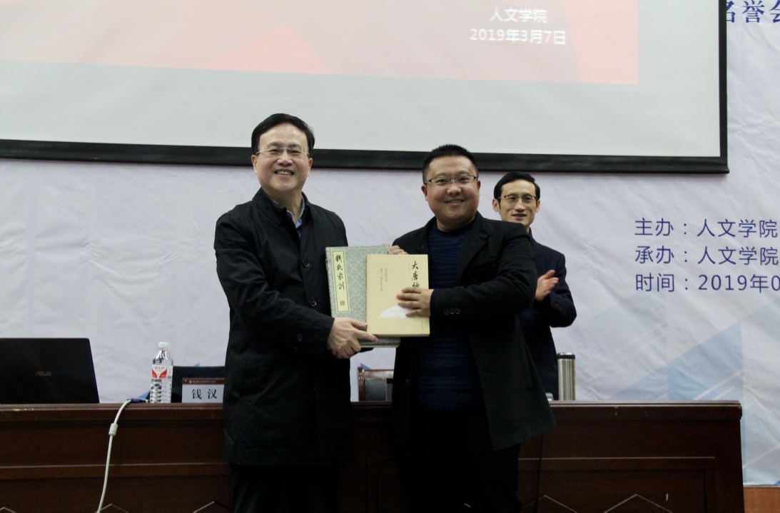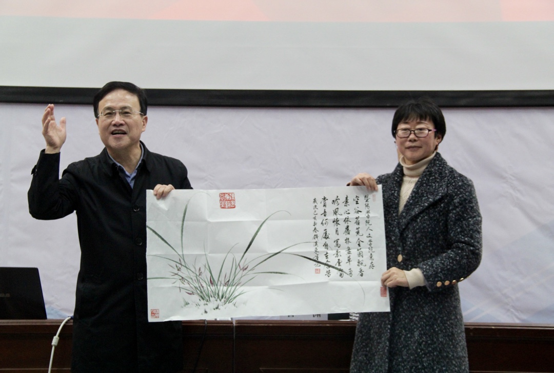 论坛以一场捐赠仪式拉开序幕,钱汉东教授将著作《大唐神韵》和《钱氏家训》赠与必赢766net手机版,由高国俊书记接受赠书;捐赠书画作品《兰花图》予人文学院,由刘伯茹院长接受赠图。钱汉东教授特为我校创作《兰花图》并附诗,当场解读含义,寄愿我校“突破寒光”、“金兰飘香”、“初心依旧”、“自在寒芳”。随后,钱汉东教授对吴越钱氏与江南文化进行了深度演讲,钱教授畅谈诸暨,他谈及诸暨的抗战历史,歌颂诸暨民风悍勇,赞誉诸暨人侠肝义胆,赞美江南美丽风光,颂扬江南水乡文化在民族革命进程中发挥的巨大作用,言语间充分展现了自己身为诸暨人的骄傲。钱汉东与同学们共同解读《钱氏家训》,以亲身经历向同学们传递其中的内涵与价值,使在座的同学们受益匪浅。