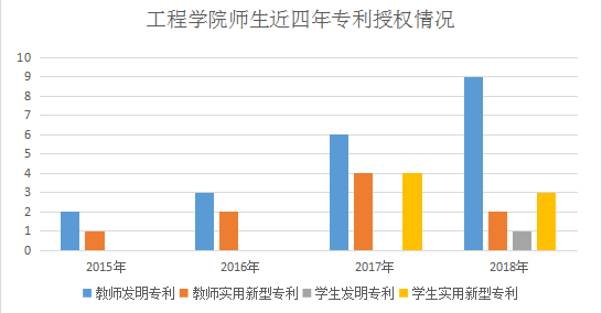 自实施“专利工程”以来,工程全体师生以培养学生的创新精神、创业能力、实践动手能力和锤炼综合素质为重点,在实践中培养学生敢于冒险、乐于创新、勇于实践的校园创业文化意识,在探索中增强师生知识产权保护能力。2015年以来,必赢官网获得专利数量、质量均稳步提升,2017年专利授权达到两位数,2018年必赢官网学生申报专利32项,师生获得授权专利15项,其中学生获得发明专利1项,实现了学生发明专利授权零的突破。“专利工程”得到有效推进,师生知识产权保护意识得到显著增强。
