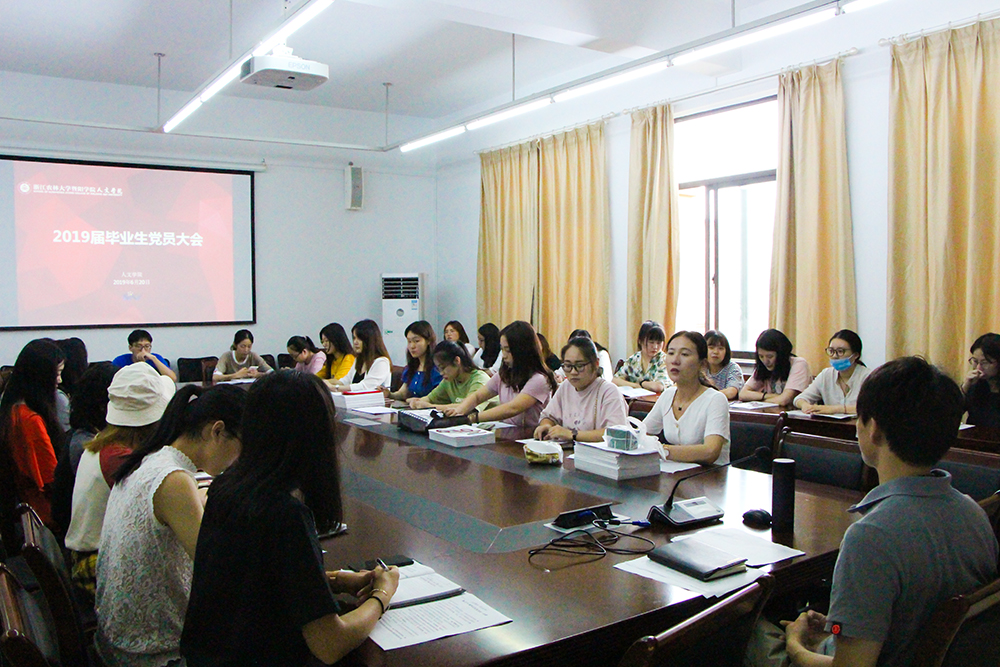 为了做好我院2019届毕业生党员离校前的有关工作,加强对我校毕业生党员的教育管理,进一步提高毕业生党员党性意识和组织观念,6月20日下午,人文学院在人文3502召开全体毕业生党员大会,学生党支部书记、全体毕业生党员参加会议。大会由党总支书记宣王威主持。