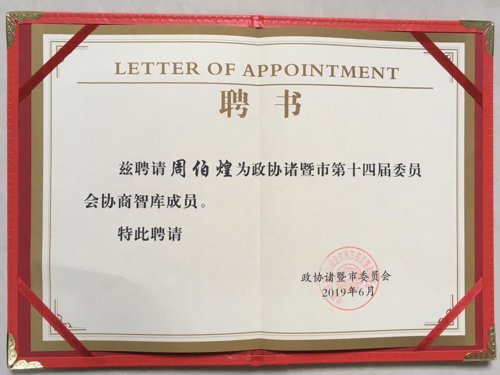 另悉,本月5日,周伯煌教授被聘为政协诸暨市第十四届委员会协商智库成员。在会上,周教授为全体政协智库专家、市民代表近120余人作了题为《关于发挥政协智库作用的思考》的业务专题培训。