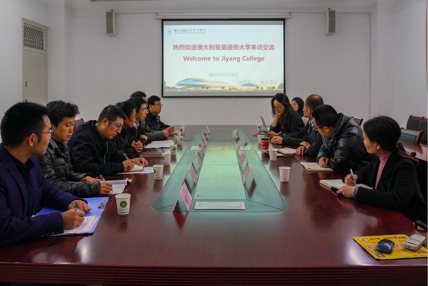 11月25日,工程技术学院举行莫道克大学国际交流会,莫道克大学哈米德·拉加教授、摩德·法兹·希拉图丁博士和莫道克大学国际处中国地区负责人赵晓丹一行来访学院,社会合作部主任王钟、副主任宣璐,工程技术学院院长彭樟林、党总支书记林爱广以及相关专业负责人、教师代表参加了交流会。