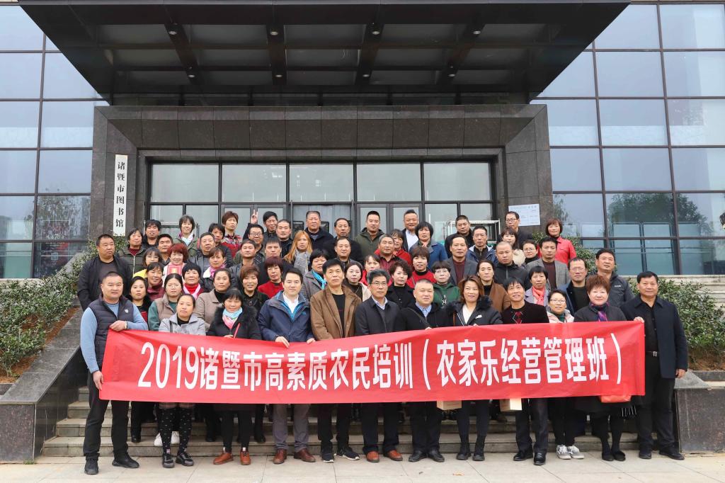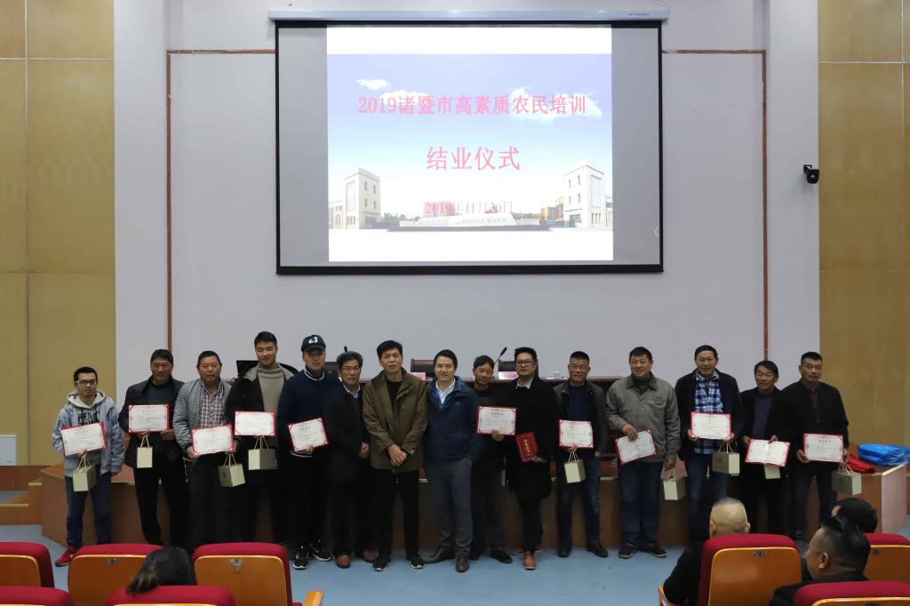 11月30日,2019年诸暨市高素质农民农家乐经营管理和植保无人机培训班在必赢766net手机版图书馆报告厅顺利结业!市农业农村局党建室副主任谢国胜、农机管理总站副站长傅建春、陶朱商学院副院长陈稼瑜出席结业仪式,130余名学员参加结业仪式。