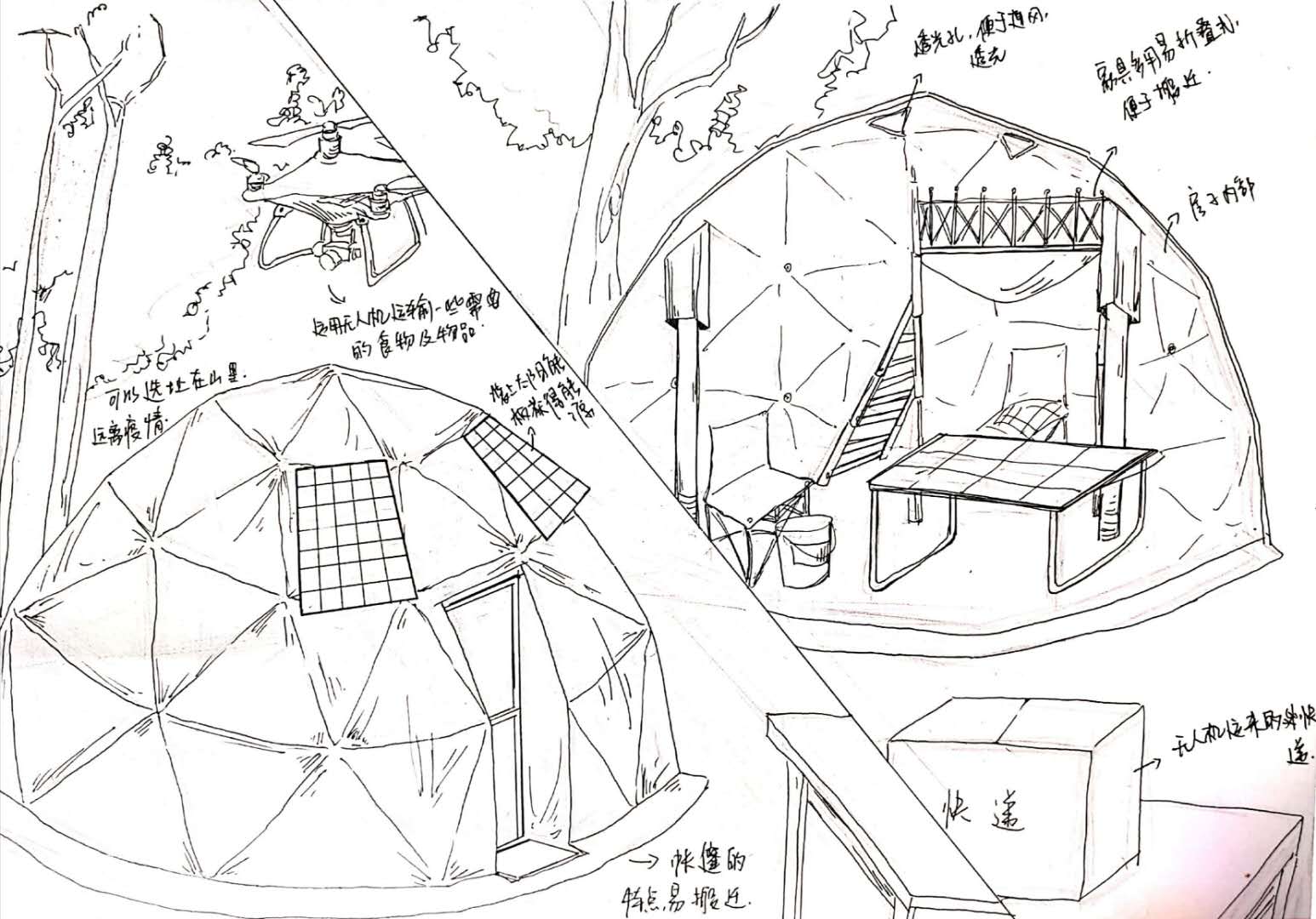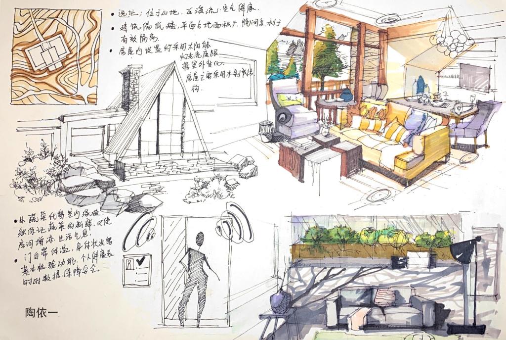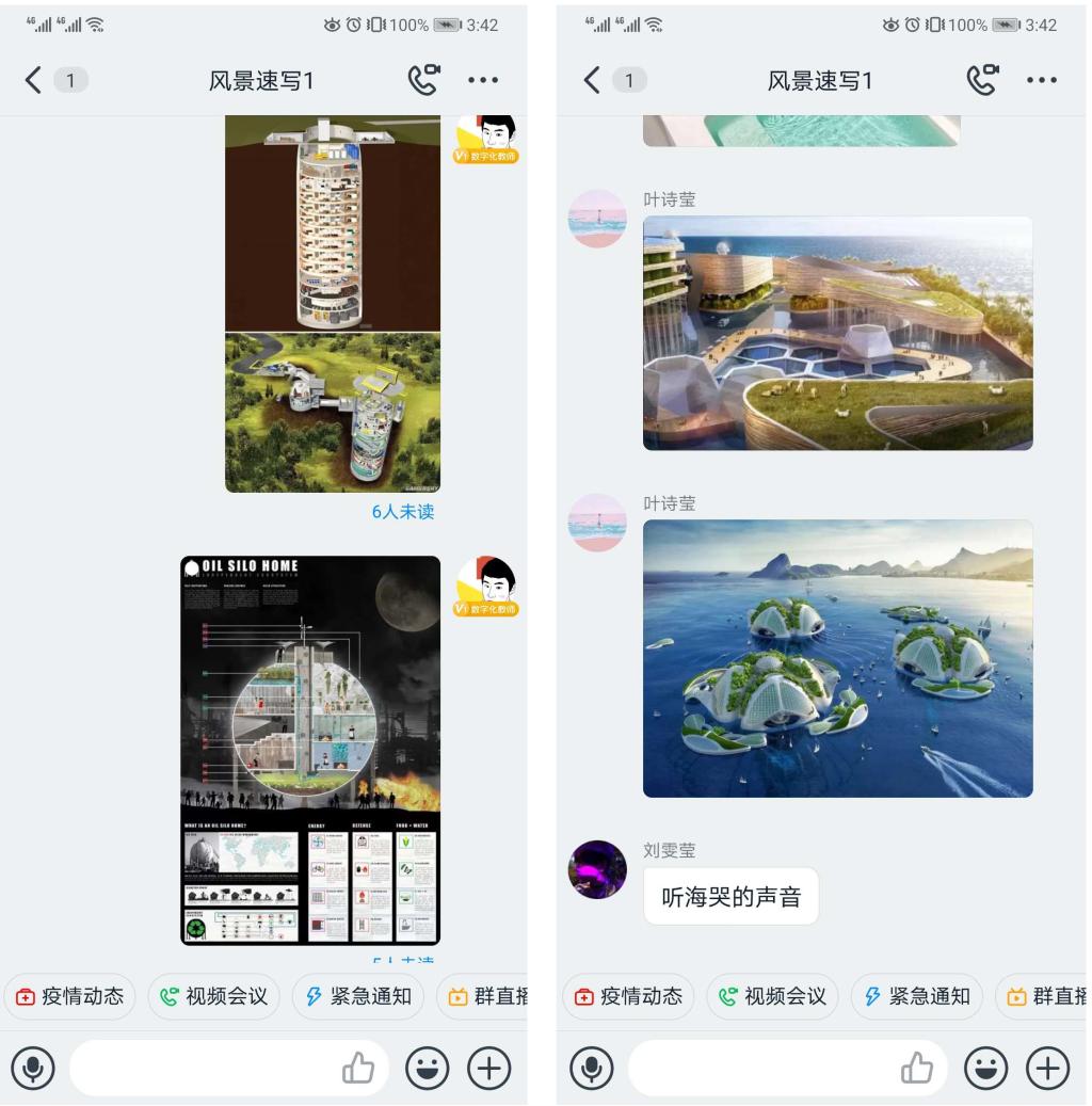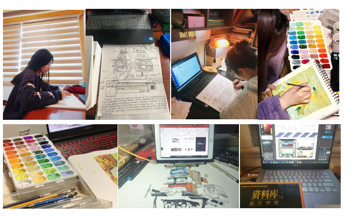 在此背景下,园林学院承担《风景园林速写》教学任务的袁政老师重新调整教学内容,以疫情为背景精选教学案例、重组课件,并在该课程中结合公益性设计竞赛活动——疫区梦享家计划,使19级环境设计的全体同学投身参与此次设计创作中,大家群策群力,接合自身的专业特点设计一个安全、温暖、可抵御疫情的梦享家,最终在线共同完成了一次有意义的“云创作”。