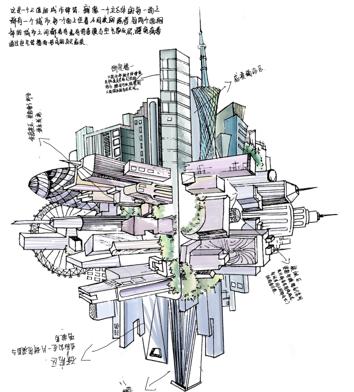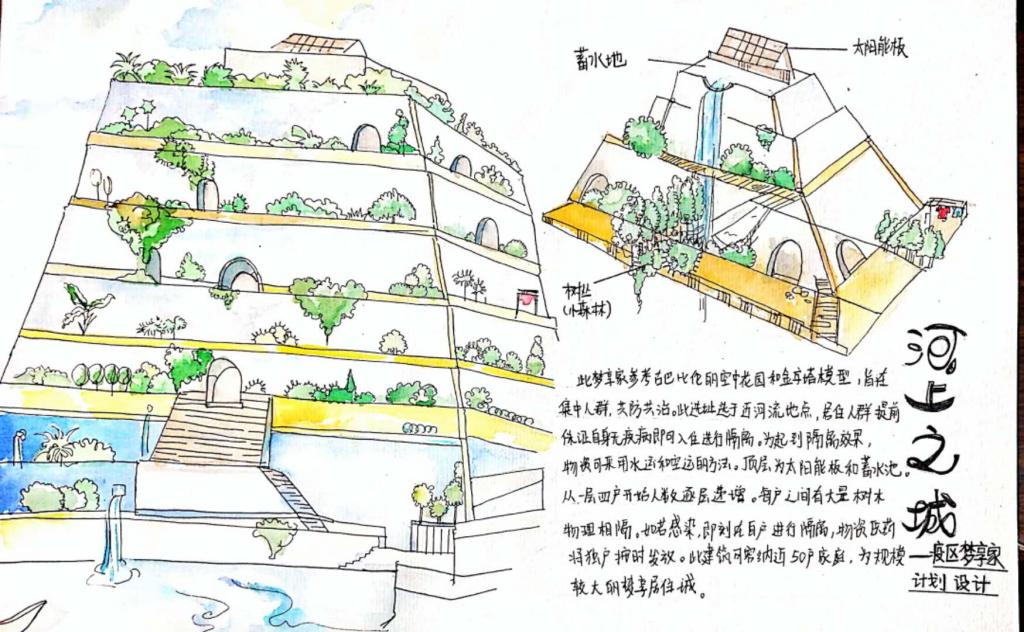 (2)作品名称:《河上之城》,作者:蒋萌欣、环境设计191