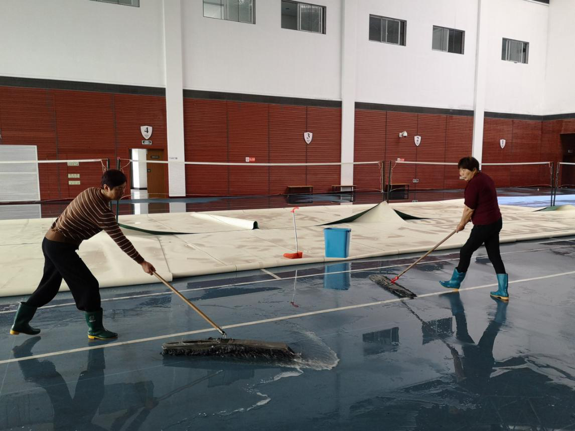 3月21日傍晚,诸暨市出现强对流天气,对必赢官网造成较大影响。经统计,较大树木受损34棵,教学楼屋顶油毡瓦吹落1000余平方米, 连廊吊顶损坏200余平方米,门窗、匣道玻璃、外墙涂料多处受损。此外,篮球场不锈钢围栏整片倒塌,篮球馆、网球馆屋顶铝合金盖板、防水层损坏严重。