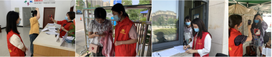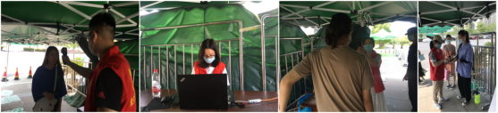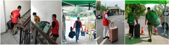 5月11日-15日,商学院教工党员志愿者们分批分组,在学院南大门门口,为陆续报到的学生测量体温、行李箱消毒、维持秩序、引导报到,以及协助学生搬运行李等工作。党员志愿者们从上午7:00到下午6:30,持续开展志愿服务,他们不辞辛苦,挥洒汗水,让学生倍感温暖,也让家长深感放心。