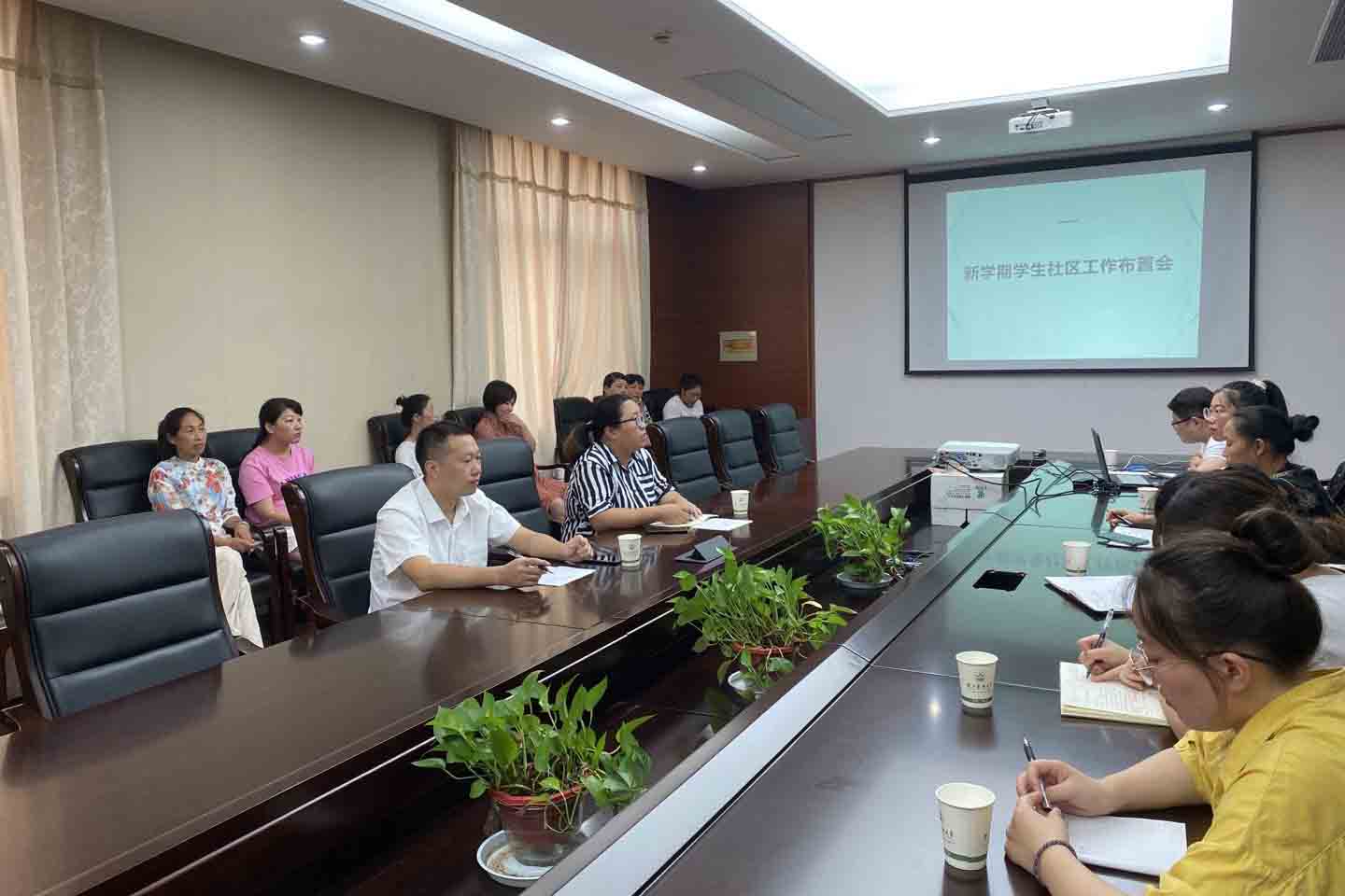 9月9日上午学工部在行政楼214召开新学期学生社区工作布置会,学工部主任徐春霞,学生社区管理办公室成员、学生社区全体生活指导员、公寓值班员参加了会议。
