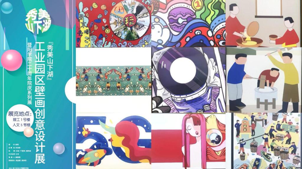 为迎接学校20周年校庆,让广大师生感受艺术的魅力,晨晓艺术与设计学院师生团队,手执画笔匠心巧思,设计了院庆主题LOGO、校庆纪念品-《暨阳之路》画册,并于11月7日—12月31日期间在理工1号楼走廊举办了院庆系列展——“秀美山下湖”工业园区壁画创意设计展、“抒”情画“艺”2020级新生作品展、“情系暨阳”主题海报创意设计展。