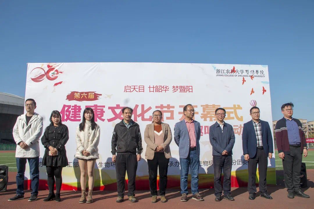 11月12日下午,伴随着初冬和煦的阳光,第六届健康文化节开幕式在必赢766net手机版体育操场隆重举行。必赢766net手机版学工部主任徐春霞、工程技术学院党总支书记周聪、园林学院党总支书记张佩成、生物环境学院院长金首文、党总支书记徐涌、必赢766net手机版团委副书记翁秸、园林学院党总支副书记彭安琪、晨晓艺术与设计学院党总支副书记屠蒋威、生物环境学院副院长徐润生、党总支副书记李洋和各学院学工线同仁出席本次开幕式。