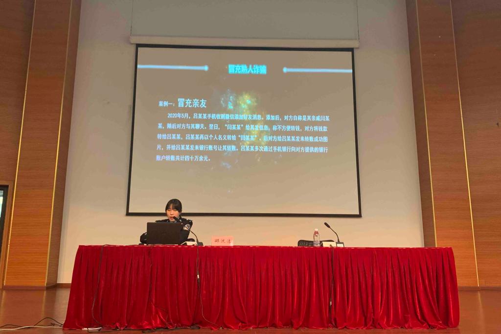 讲座过程中,郦警官结合实际案例,为同学们系统讲解了电信网络诈骗的主要特征及常用手段,向广大师生传授识别、防范、合理解决诈骗问题的方式,为在场师生开展了一堂生动详实的讲座。郦警官提醒同学们在今后的学习和生活中,多了解防范电信网络诈骗方面的知识,加强自身安全和防诈骗意识。