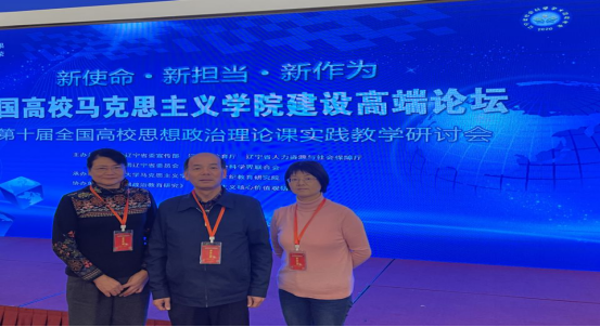 坚持立德树人根本任务,高水平做好思想政治工作,打造有灵魂的思想政治教育体系始终是高校思政理论课必须要回答的问题。人文学院马克思主义理论教研室团队也一直围绕这一目标努力让思政课变得丰富多彩。2020年11月27-29日,人文学院马克思主义教研部万泽民教授、彭金玉、雷梅珍副教授受邀参加了在沈阳东北大学召开的全国高校马克思主义学院建设高端论坛暨第十届全国高校思想政治理论课实践教学研讨会。此次会议由中共辽宁省委宣传部、辽宁省教育厅、辽宁省人力资源和社会保障厅、共青团辽宁省委员会、辽宁省社会科学界联合会主办,东北大学马克思主义学院和辽宁世纪教育研究院承办。来自全国百余所高校230余名学校领导、马克思主义学院院长、专家学者、思政教师等230余名参加研讨研讨会。