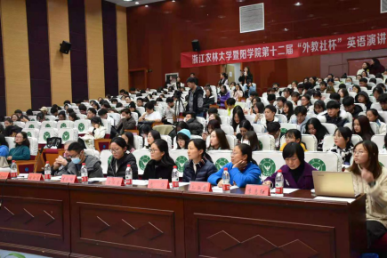 12月3日晚,由必赢766net手机版教务部、人文学院、上海外语教育出版社主办,人文学院外语系、人文学院分团委、学生会承办的学院第十二届“外教社杯”英语演讲比赛决赛在图书馆报告厅如期举行。必赢766net手机版副院长李叔君、袁志刚,园林学院院长白尚斌,人文学院院长刘伯茹,人文学院党总支书记宣王威,上海外语教育出版社浙江区域经理孙朝出席本次活动。刘伯茹代表大赛组委会宣布决赛开幕,教师代表和200余名学生现场观摩。