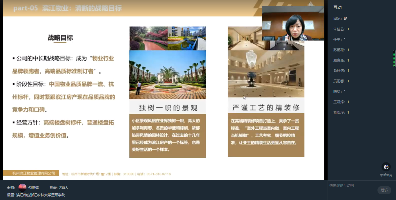 为进一步拓宽就业渠道,努力为毕业生提供更多就业机会,4月12日晚,园林学院邀请杭州滨江物业管理有限公司召开钉钉群直播招聘会议,2021届全体毕业生参加了网络招聘会。