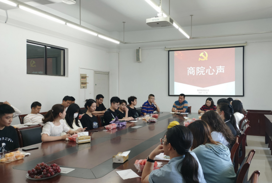 “商院心声”是“明德商院 红色引领”党建工作品牌三个系列子活动之一,旨在了解师情、生情,及时解决工作中存在的不足之处和补齐短板,强化民主统战。 同时,为深入开展党史学习教育,践行“以生为本”的教育理念,切实做好“我为群众办实事”,倾听毕业生的心声,助推学院事业改革与发展,6月24日下午,在文人3302会议室,商院党总支召开了第二期“商院心声”座谈会,会议由党总支书记潘小承主持,毕业生党员及学生干部代表40余人参加座谈会。