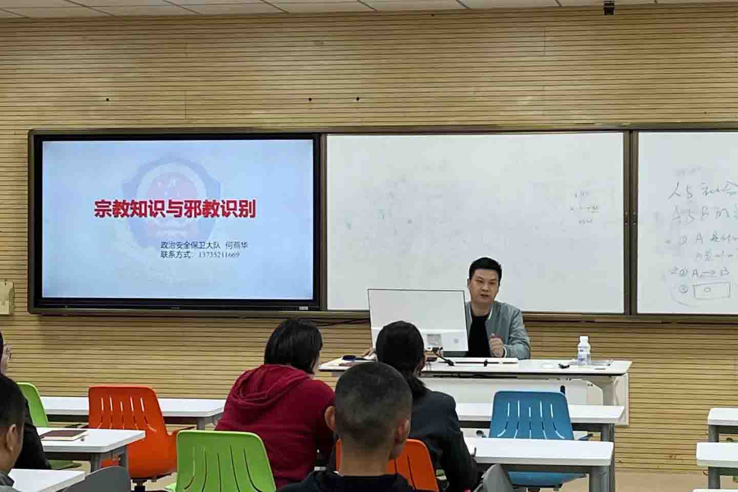 10月19日下午,学院在理工1502召开第18期辅导员思享会。党委副书记高国俊出席,各二级学院党总支副书记、全体辅导员及学工部成员参加会议。此次思享会邀请到诸暨市政保大队副队长何燕华做题为“宗教知识与邪教识别”专题讲座。