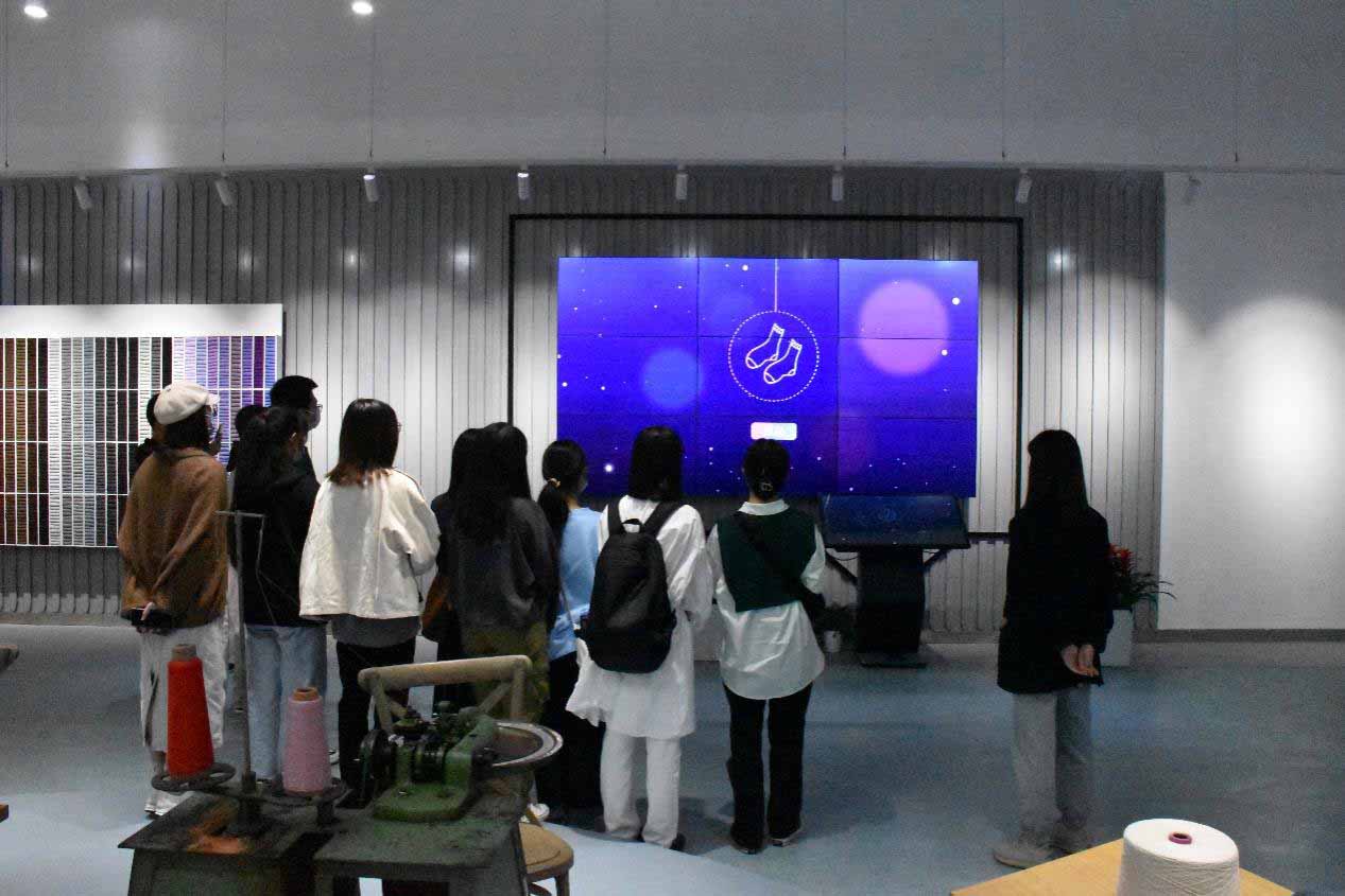 通过展馆参观与专业讲解,学生们更好了解了近代袜业的发展史以及大唐袜业的时尚潮流产品,也深刻感受到智慧工厂利用大数据技术带来的高效快捷。随后在阿大互联科技工作人员的安排下前往品牌中心参观,并在微印工作人员的指导下进行体验试播,对直播行业有了更深入的了解。