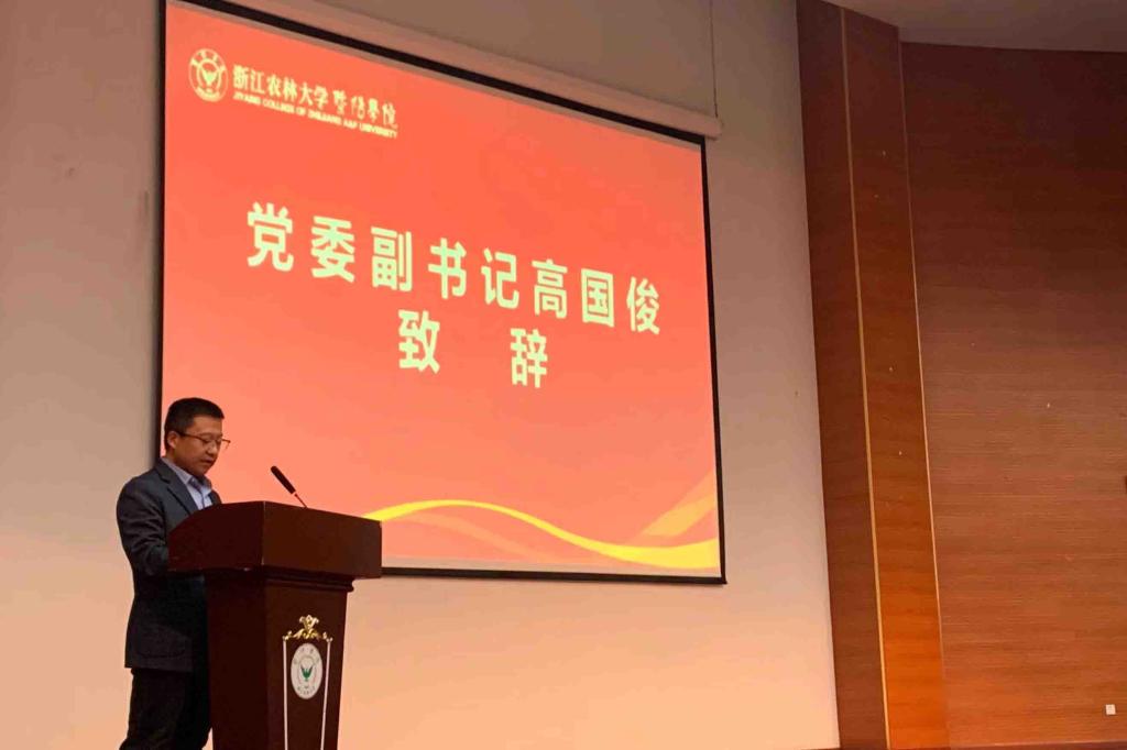 高国俊为开幕式致辞,他以做好新时代校园安全教育文化建设工作,加强学院学生安全教育为切入点,指出要形成体系化的安全教育机制,安全教育常态化工作体系,学生自我教育、自我服务的安全自主意识与行动体系,品牌化的举行安全教育文化体系,旨在增强学生安全防范意识和安全防范能力,让校园成为最阳光、最安全的地方。