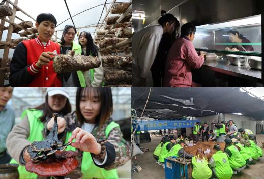 第二天,我们来到第四站街亭润泉菌菇基地。在第四站中,同学们听取了泉润菇业创始人周晓武的创业故事,并跟着农技专家陈琼现场学习了食用菌栽培技术。随后特邀高级绿化工、林木种苗技师何焕永老师带领同学们一起种植羊肚菌,制作灵芝微观盆景等。在一次次的切身体验中,同学们深入了解了农产品以及特色农业,认识到了农业的发展与进步,以及农产品的生长过程与应用,也明白了发展离不开实践,只有实践才能出真知。经过第四站的学习,同学们不仅收获了欢乐,丰富了阅历,也深刻认识到丰硕成果需要靠自己的实践取得。