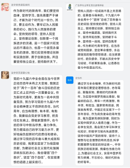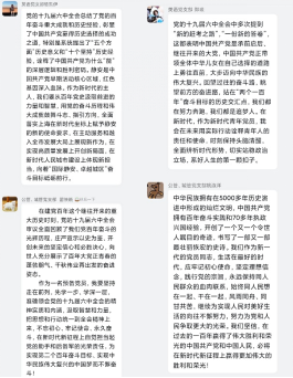 会议结束后参会党员就“如何学习贯彻党的十九届六中全会精神,践行新时代青年的使命责任”,在群里发表心得体会。