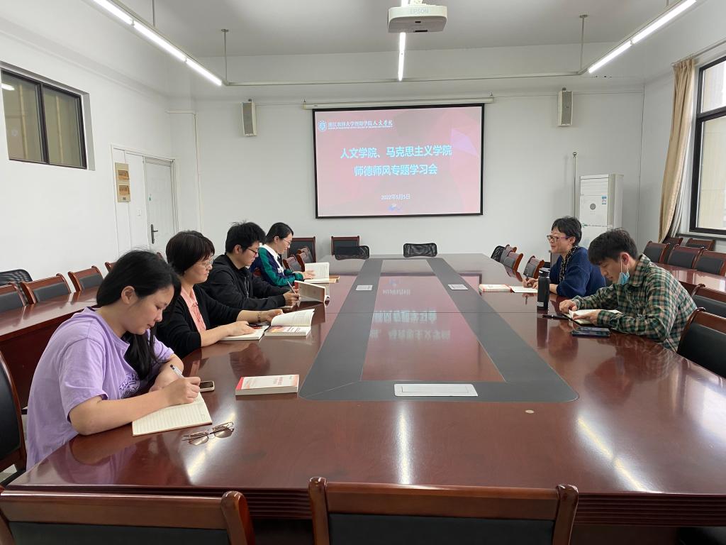 为深入学习贯彻习近平新时代中国特色社会主义思想,落实习近平总书记关于教育的重要论述,扎实推进新时代教师队伍建设,建立健全师德师风长效机制,人文学院、马克思主义学院组织教职工开展师德师风专题学习,采取集中学习与自学相结合的形式,要求全体教职工自学并且做好学习笔记上交,并在5月5日下午通过钉钉线上会议召开师德师风建设专题学习会。