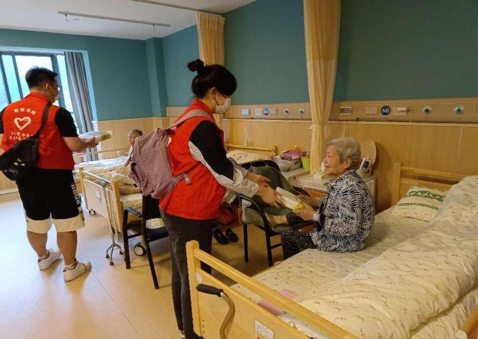 此外,对于一些在特护病房行动不便的老人,学生党员志愿者们也一一前去慰问,并送上了暖心的礼物。青年学生的到访让休养院充满了朝气与活力,志愿者们不仅用精彩的演出给老人以慰藉,更是以实际行动温暖了老人们的心。