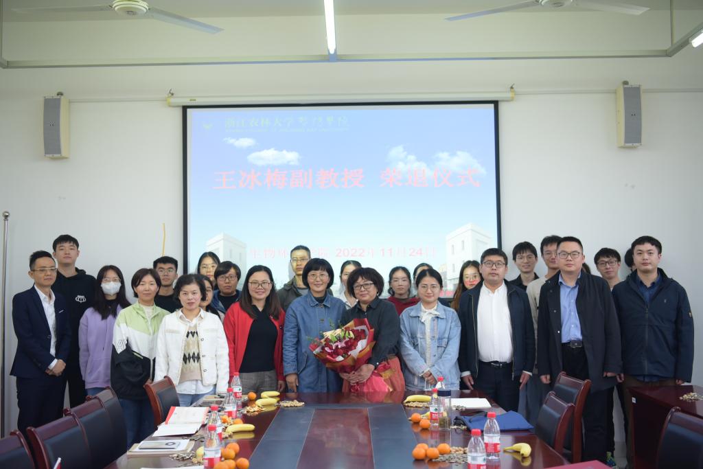 徐润生代表生物环境学院领导班子对王冰梅多年来为中药专业所作的贡献表示了感谢,并希望王冰梅老师在退休后继续为学院青年教师培养和学院发展建言献策。